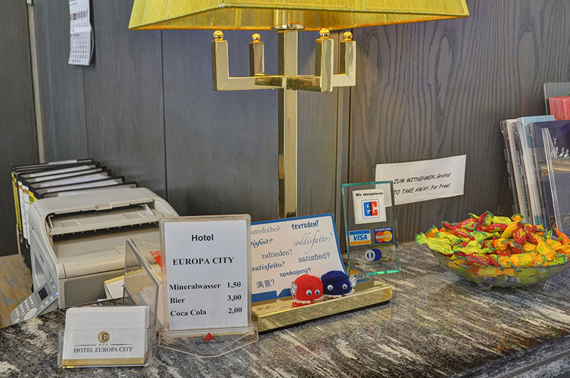 Die Rezeption ist Rund-um-die-Uhr geöffnet und wir bieten Ihnen ein Frühstücksbuffet / 12,00 € pro Person/Tag (vorbehaltlich der Verfügbarkeit), eine kostenfreie Flasche Mineralwasser auf dem Zimmer, öffentliche Parkplätze (gebührenpflichtig) , kostenfreie Zeitungen und tägliche Zimmerreinigung an.